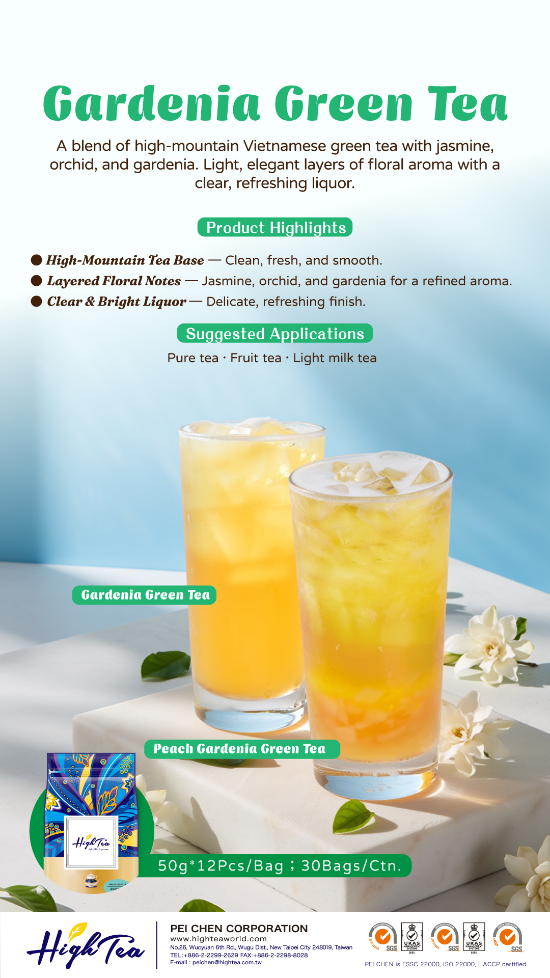 Crafted from 1,500 m-high Vietnamese green tea, blended with jasmine, magnolia, and gardenia for an elegant, layered aroma and clear liquor.